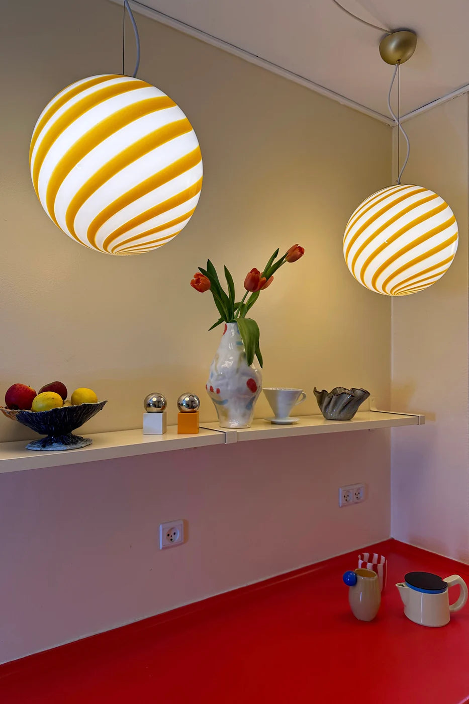 Varje lampa är munblåst och handgjord i Murano i Italien.